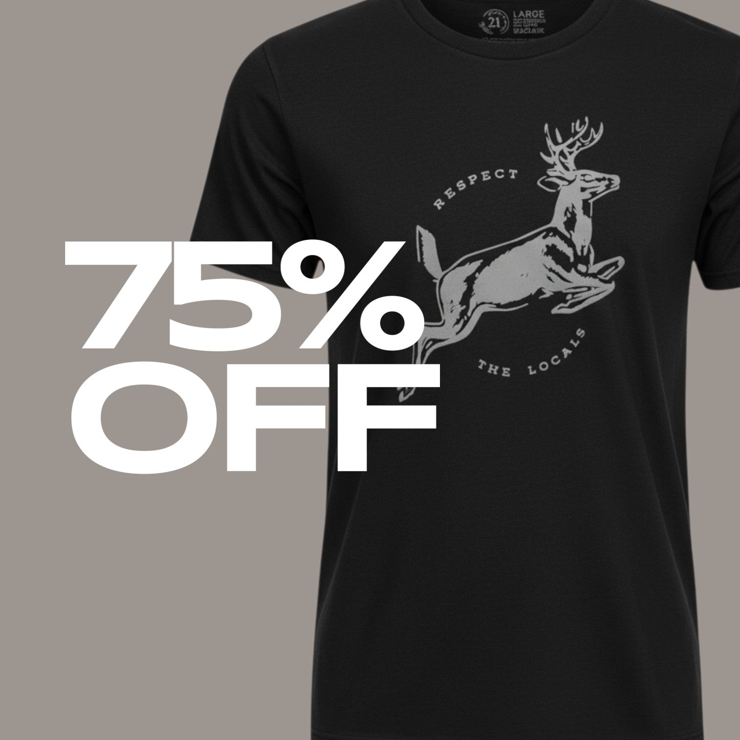 Charcoal black with "Respect the locals" and a deer print